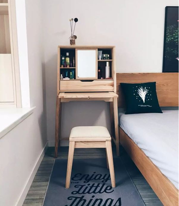 小茶几、凳子、化妆台也相同适用于床头。相对传统的粗笨床头柜,这样细巧轻盈的规划,不占太多的空间,根本的收纳彻底没问题。最重要的是,比较一般的床头柜,这些小卧室小家具变成了装修品的一种,几乎太完美了。